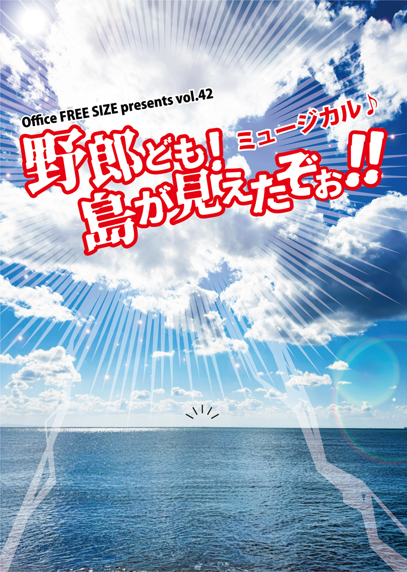 Office FREE SIZE presents vol.42ミュージカル♪『野郎ども! 島が見えたぞぉ!! 2026』大航海時代… あんな海賊団 そんな海賊団 そして、こんな女海賊団がいた! 女海賊団に次々と訪れるハプニング!…(?) しかしそんなハプニングにもめげず 今日も宝の眠る島を目指す!!! ある女海賊団にまつわる物語。 【作・演出・作詞】いよく直人 【作曲】Chaco / Elie 【振付】ONOJI 【主催】Office FREE SIZE |