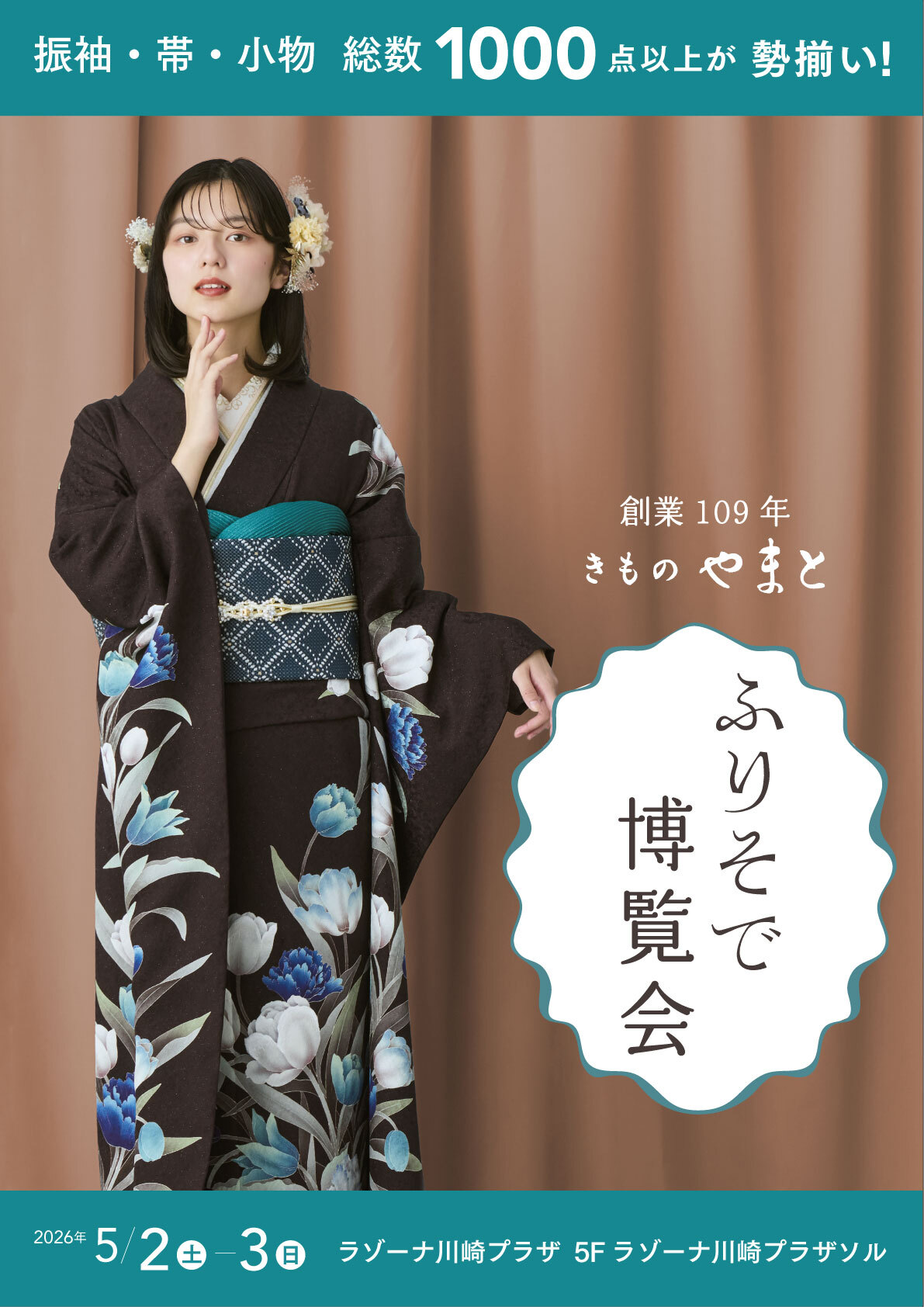 きものやまとふりそで博覧会年間最大級のふりそで博覧会が川崎で初開催。振袖・帯・小物 総数1000点以上の品揃え。Web予約で振袖が10000円OFF他、プレゼントも。創業109年のきものやまとで新作オリジナル振袖をお試しください。 【主催】 株式会社やまと |